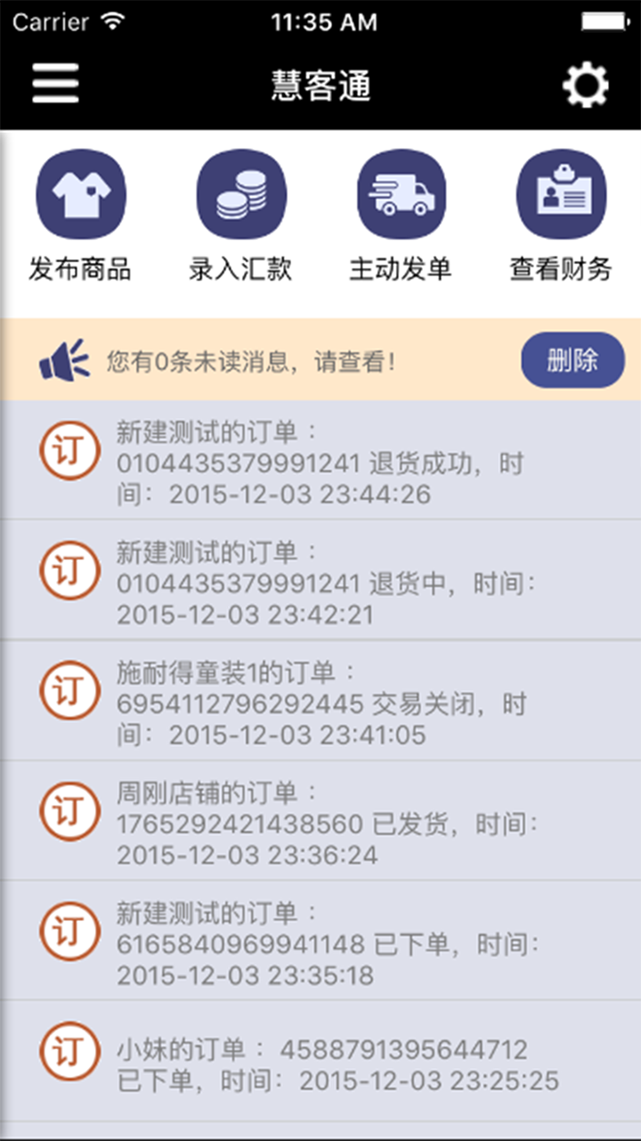 慧客通app是一款专门为服装行业打造的一款中小型批发商渠道在线管理应用,其目的在线直接在线进行财务账单管理、客户的在线管理,可以随时发布商品信息,在线发单、录入汇款等,是一款非常实用的管理应用,欢迎需要的朋友来下载体验!
