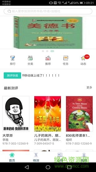 书香校园app是一款非常好用的阅读服务软件,图书资源丰富多样,涵盖经典阅读、双语阅读、科普阅读、绘本阅读等分类,用户可以在线搜索图书,进行测评或收藏,操作简单排版精美,需要的朋友快来下载吧!