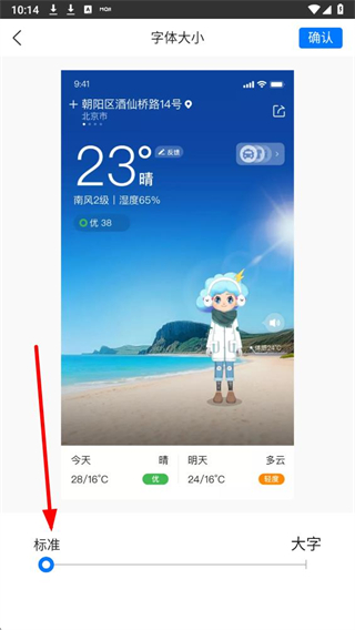 4、在页面下方,拖动滑块选择字体大小,再点击确认即可完成修改。