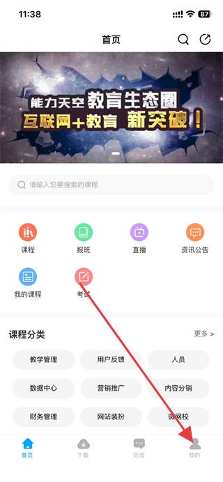 1、打开网校课堂,点击底部导航栏的我的选项。