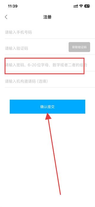 4、设置密码,点击确认提交,即可完成账号注册。