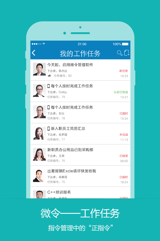 微令手机版是一款移动办公app,掌上的cms管理系统。微令app让组织管理简单方便,工作任务、工作请示一个app就搞定,可以让工作的效率大大提高,毋庸置疑,微令是一种组织方式,带来的是一场组织管理的革命。