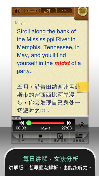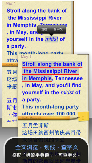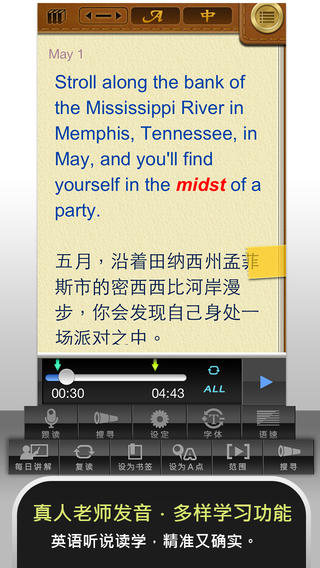 4.可查看中文翻译,并提供英/中同步阅读,以训练听、读、译能力。