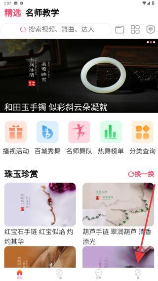 1、启动博视广场舞app,在首页内点击我的功能按钮。