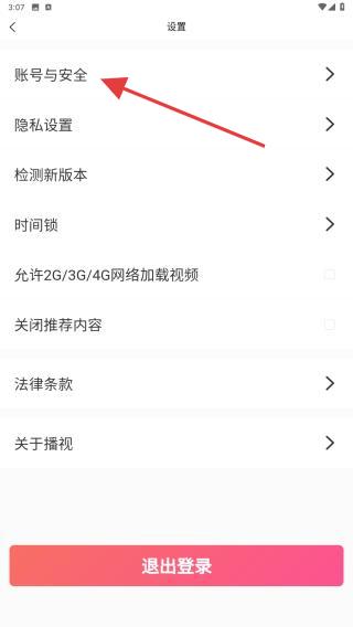 3、在设置的页面内,点击账号与安全的功能按钮。