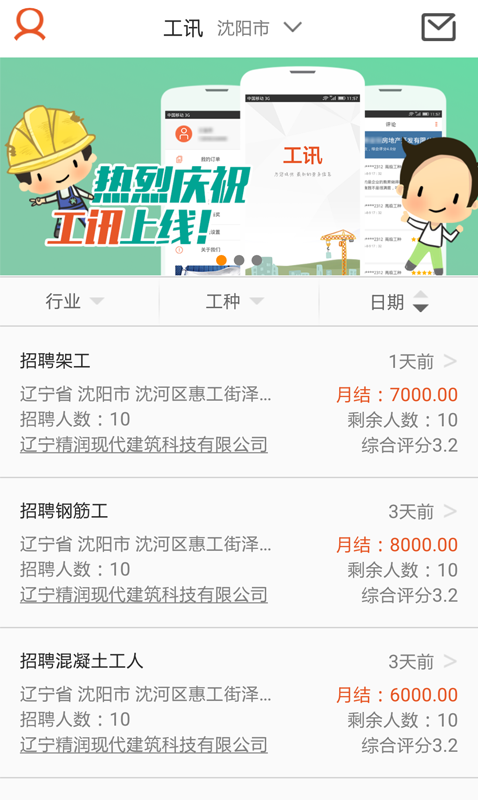工讯app是一款农民工求职类手机软件,这里含有钢筋工、水泥工、混凝土工等各种各样的岗位招聘,农民工可以轻松找到自己适合的岗位,用人单位可以在这里发布自己的岗位需求,轻松找到想要的人才,喜爱的朋友赶快到绿色资源网下载体验吧!
