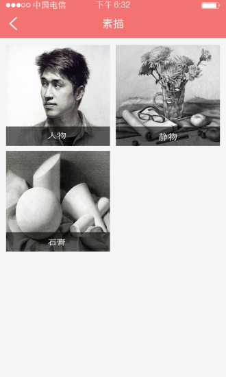 临摹图库里涵盖素描、速写、色彩、设计、国画、书法等几大类免费图片库,优秀作品可随时临摹、参考。