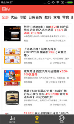 1.国内专区 - 第一时间同步京东、亚马逊、天猫淘宝等知名电商折扣优惠信息,抢购快如闪电