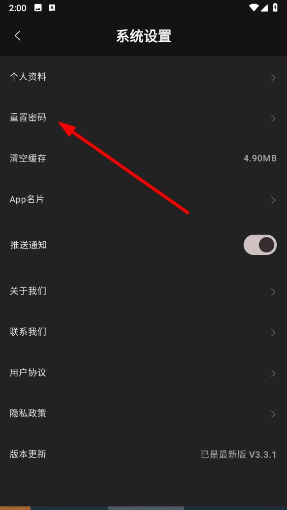 3、在系统设置界面里,点击重置密码选项,进入重置密码页面。