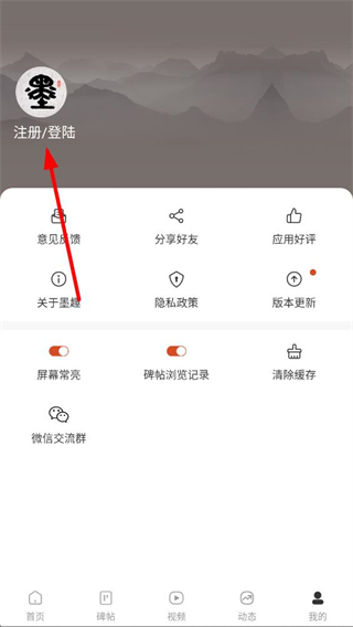 2、在个人页面,找到注册登陆入口并点击,进入账号操作界面。