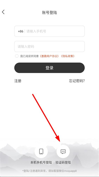 3、在账号登陆页面,点击底部验证码登陆选项,切换至验证码登录界面。