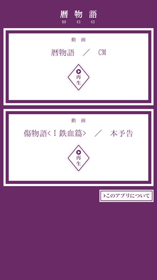 历物语手机客户端是一款由Aniplex公司推出的物语”系列作品的最新官方app,历物语官方手机app具备物语系列角色语音日历的机能。App中将加入短篇动画《历物语》的每周更新和限定免费。并且,具备物语系列角色语音日历的机能,从1月1日起,每天都将有角色配音的更新。