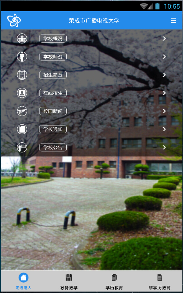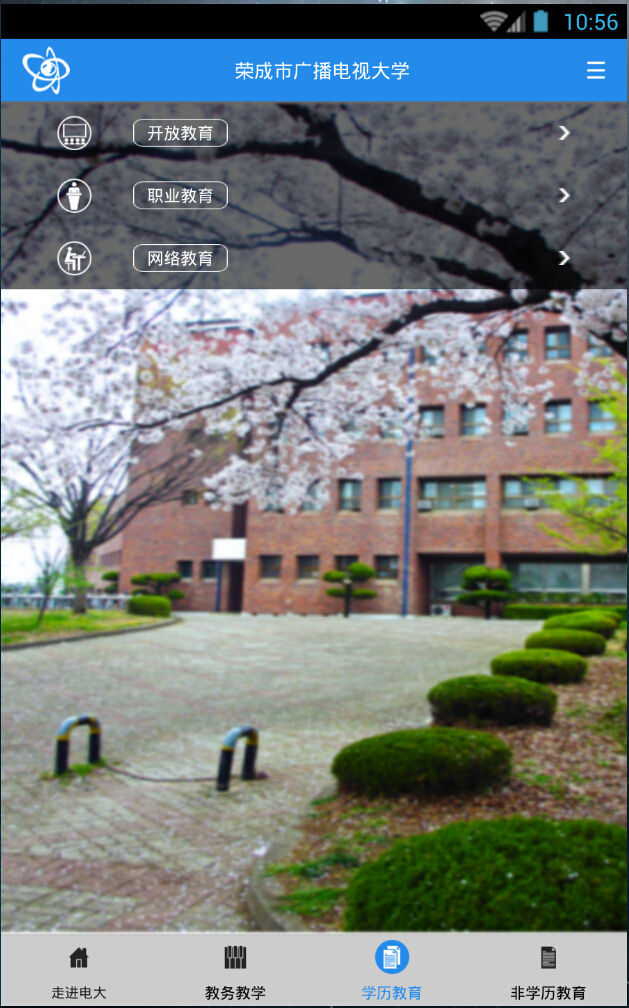 荣成电大app是荣成广播电视大学为了方便学生更好的接受校园消息等推出的其官方的手机客户端,用户不仅能够迅速的获取校园的通知公告,还能查询教务系统消息,了解招生简章等,是一款信息非常全面的校园应用,欢迎需要的朋友来下载体验!