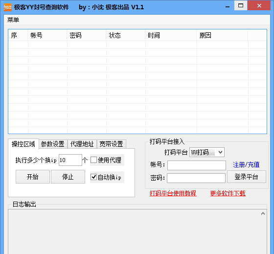 极客yy封号查询软件是一款专门为yy用户打造的账号封号查询工具,可以为用户进行批量yy账号查询,快速查询被封账号,可适用于多个yy账号的用户,有需要者欢迎下载!