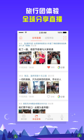 出游前,可以欣赏行程中的“旅行团全球分享直播”,方便你了解当地的实际状况。