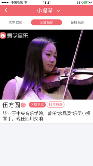“爱学音乐”是成都本土孕育出的一个K12音乐社群兴趣教培O2O平台,这是一个帮孩子和家长寻找音乐名师、分享成果和名师点评的开放式平台。现已集结400名优秀的音乐老师,家长可以在平台上根据自身需求为孩子快速找到匹配的优秀的音乐名师。