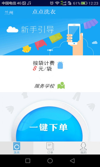 大学生网上洗衣服务平台,通过手机即可完成下单洗衣,免费收送,足不出户就可完成衣物洗涤,让大学生有更多的时间去思考人生,完成学业。