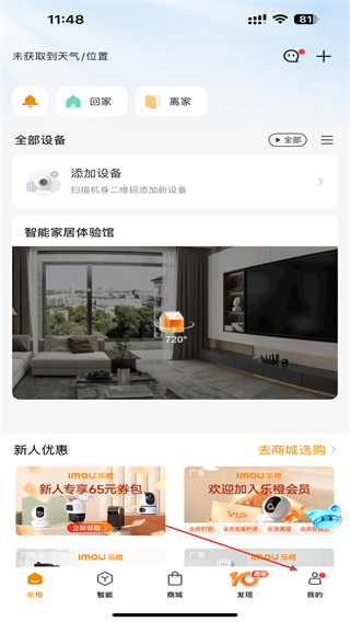 1、启动乐橙监控的应用,进入时点击底部我的按钮。