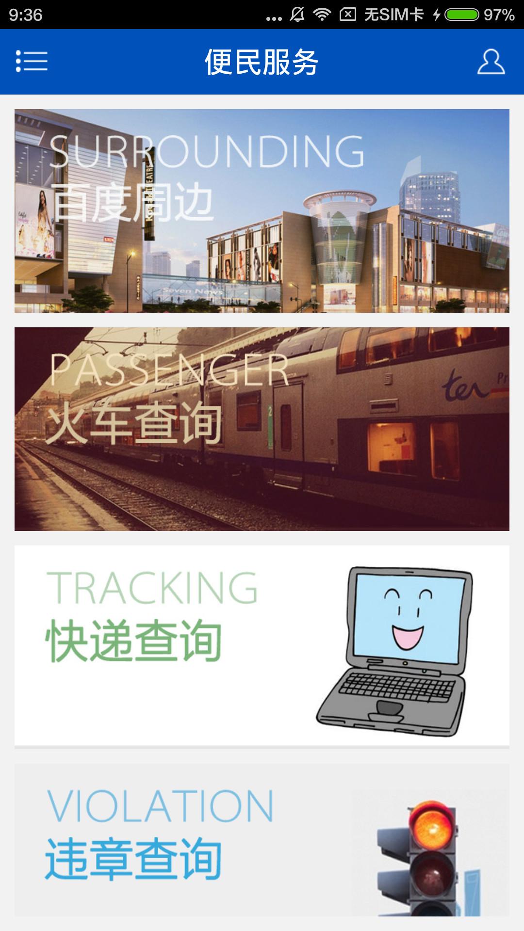 3、提供周边信息、火车、快递以及违章等的在线查询
