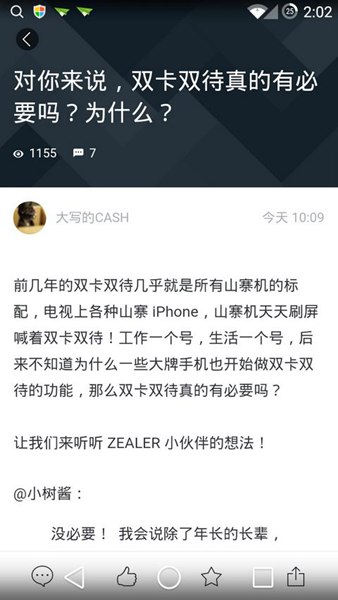 ZEALER致力于全方面地覆盖科技生活。这里有最好玩的科技社区,精选优质的数码资讯,定期推出最新最好玩的科技产品众测;在小组里认识你的科技同好,参与最有观点的话题讨论,最具极客情怀的线上下活动;独家科技栏目,用最轻松和接地气的方式,将对科技生活全面的认识带给用户;除此之外,还能通过 FIX 获取最靠谱的维修服务及二手机购买。