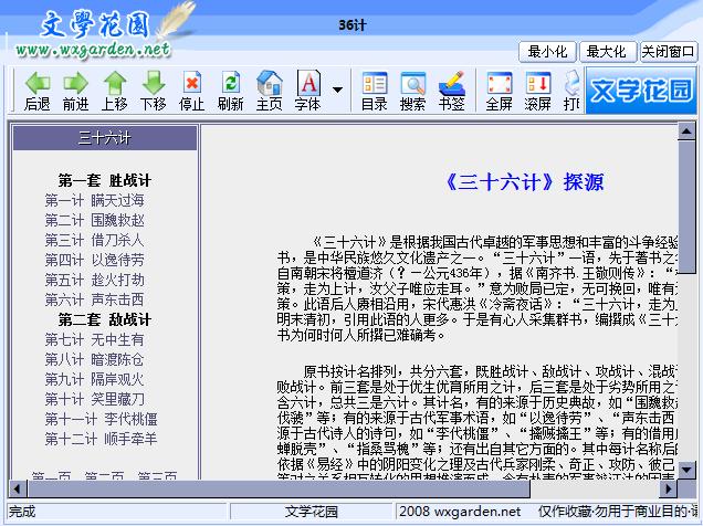 三十六计全集电子书分享给喜欢的朋友们,说到36计,大家应该是耳熟能详,瞒天过海、趁火打劫等相关的故事你知道多少呢,这里分享给大家三十六计全集阅读,感受一下三十六计的魅力。