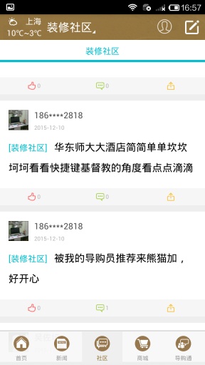 更能将每天的家装快乐、烦恼、疑惑分享到“熊猫Plus”,让更多人有家装经验的用户参与互动。