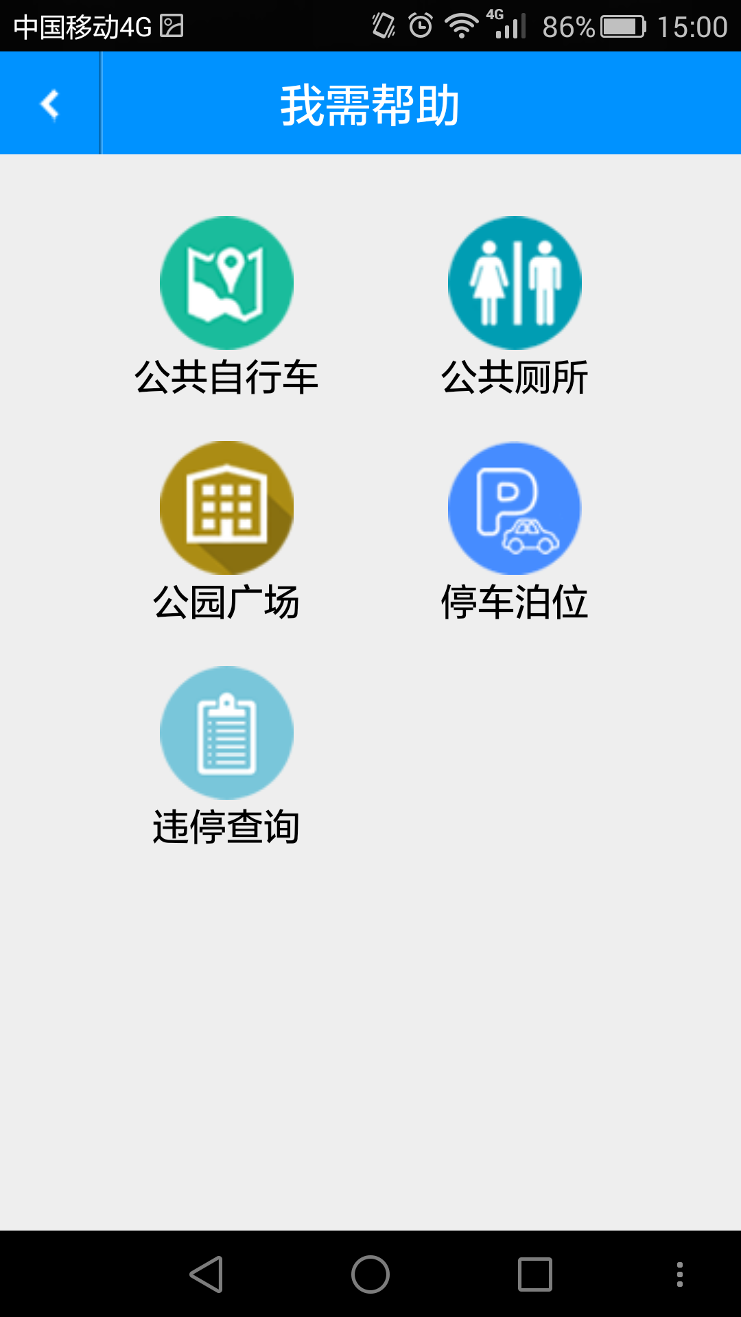 2、为用户提供找公共自行车租赁点、停车泊车点、找厕所、公园等便民服务