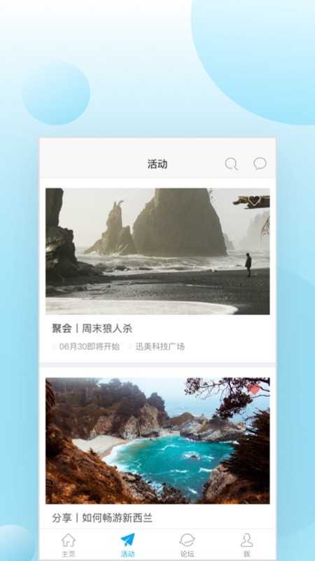 活动模块,诸多的优质活动任你参与,同时还可以分享活动给他人使用;