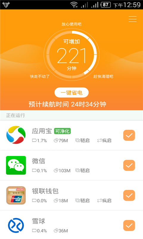 5.不同于通过关闭WIFI/蓝牙等功能进行省电的应用,我们认为wifi/蓝牙并不是当前手机耗电大户,频繁的开关WIFI/蓝牙会降低用户的手机使用体验,以及可能增加耗电。