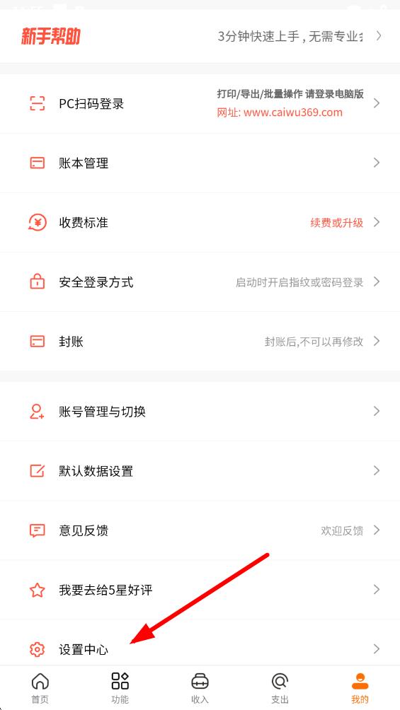 2、在我的界面向下滑动,找到并点击设置中心选项进入设置相关页面。