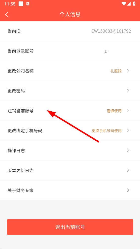 3、在设置中心页面找到注销当前账号选项,点击进入账号注销确认流程。