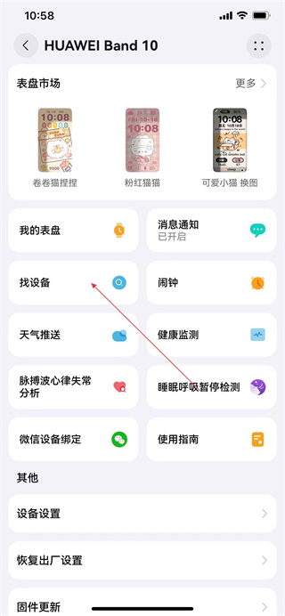 2、在设备管理页面中,点击找设备选项,进入找设备界面。