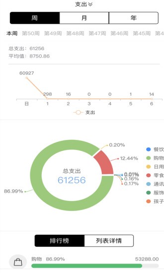 区别其他软件还有细节上是极简风格,但是我们产品在细节上做了很多处理,我们图标统计包括了,每日,每周,每月,每年,更详细,查询更立体,同时我们的饼图和折线图是免费使用的,不需要购买会员
