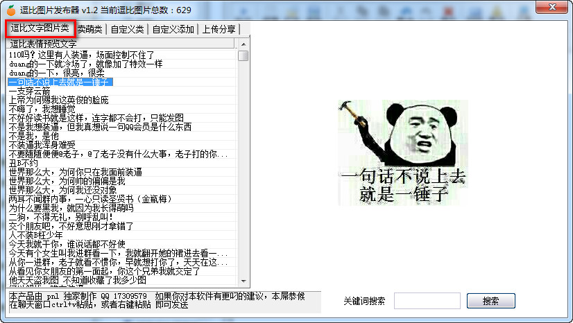 4、上传分享,可将自己制作的图片表情上传到逗比图片发布器上,让更多的人看到你做的表情图片。