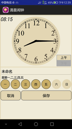 清晨闹钟app是一款非常实用的闹钟类手机软件,软件界面非常简洁,使用起来也非常的方便,用户可以每天或者每星期都设置不同的闹钟音乐,让每天的铃声都与众不同,带来新鲜感,喜爱的朋友赶快到绿色资源网下载体验吧!