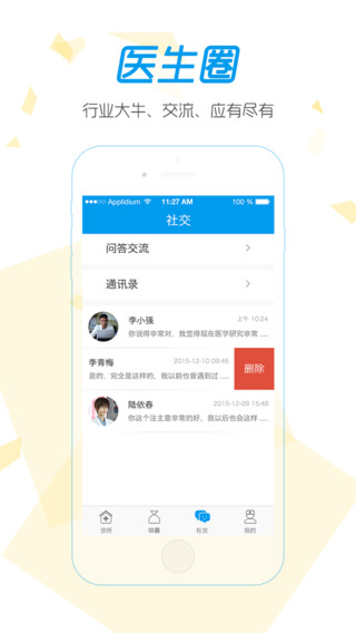1.医生圈子:医生可发起或参与医生间的一对一或群聊专业话题讨论。行业大牛交流、临床问题讨论等应有尽有。