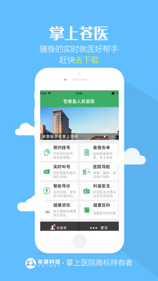 “掌上苍医”苍南县人民医院对患者服务的深入挖掘,从诊前、诊中、诊后多流程简化就医流程,提升就医体验。目前已实现手机挂号、取报告单、智能导诊、科室医生、医院导航、健康资讯、健康百科等功能。