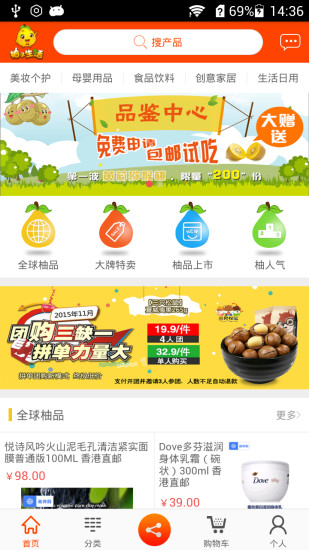柚子生活app是手机端的一个购物商城,在这里你可以买到你想要的来自全国各地的食品,并且软件还有限时特卖的活动,让您尽享优惠,品鉴中心中还有免费购买商品的机会哦!如果您不知道该如何选择,可以在柚人气上看看产品热销榜再做决定。是一款非常方便快捷的手机购物app。