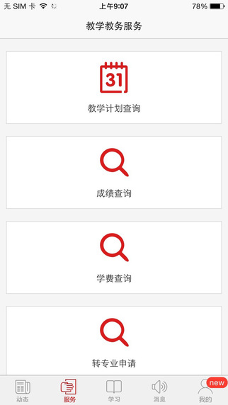 1.提供教学计划查询、成绩查询、学生选课、学籍异动等教学服务功能。