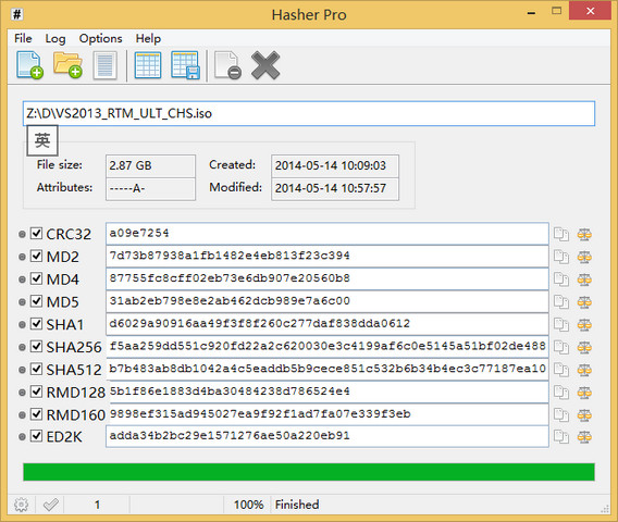 Hasher是一款哈希计算器,Hash也是一款md5校验工具,Hash支持文件拖放,速度很快,可以计算文件的 CRC32, MD2, MD4, MD5, SHA1, SHA256, SHA512, RipeMD128, RipeMD160, ED2K的值,并保存为SFV, MD5SUM, SHA1SUM文件中。