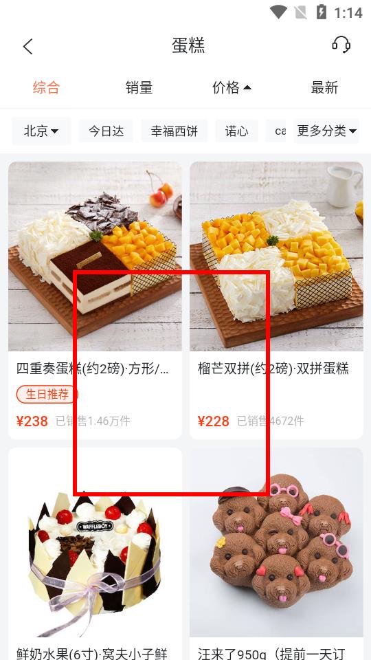 3、浏览生日蛋糕列表,挑选想要订购的生日蛋糕,像四重奏蛋糕这类产品。