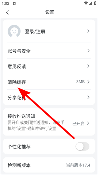 3、在设置界面中,点击清除缓存选项,完成缓存数据清除操作。