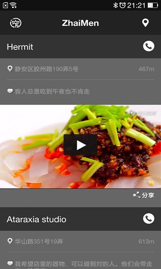 ZhaiMen app是一款能够帮助你搜寻附近的美食以及旅游景点等的一款手机应用,但是不同于其他的美食景点推荐应用,这款应用会将你搜索到的东西以视频的方式呈现给你,让您能感受得更加的真实,很有创意的一款应用,喜欢的赶快来下载吧!