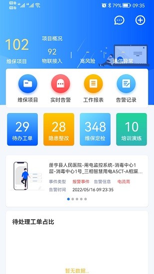 报警中心:实时展示设备的报警信息,隐患信息,支持快速响应和处理信息;