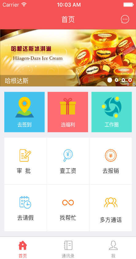1.通讯录,企业组织架构一目了然,随时随地,快速找人。
