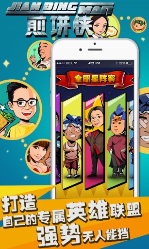 煎饼侠是屌丝男士系列经典的创造者,大鹏导演的2015暑期喜剧电影大作《煎饼侠》的正版同名游戏作品,邓超,陈赫等一众跑男明星诚意推荐,柳岩,冯潇潇,小沈阳等大腕倾情加盟,游戏中同样体现了电影中的惩恶扬善的正能量!