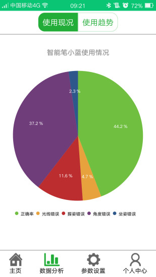 使用现况和使用趋势图可直观反映孩子使用笔的情况,做到改正孩子坐姿,预防近视的初衷。