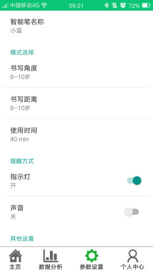 让我们可以根据孩子的年龄对智能笔的角度、距离以及使用时间进行科学的设置