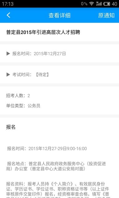 3.用户可以通过贵州招考app来查看贵州地区事业单位招考的时间、地点、要求等各类学习。