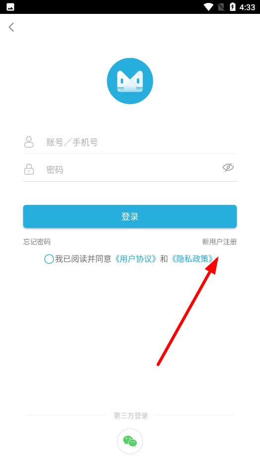 2、进入登录页面后,点击下方新用户注册选项进行注册。